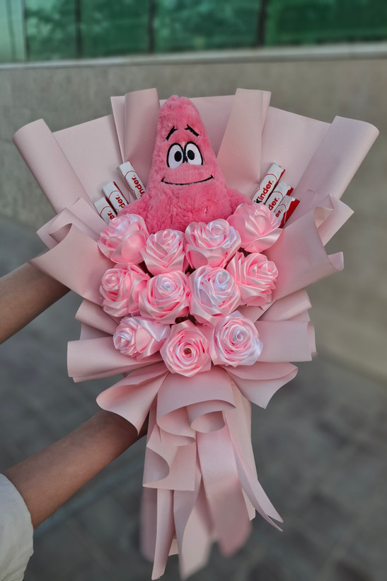 به همراه ۱۱ عدد گل دست ساز پارچه ای و ۶ عدد شکلات کیندر اورجینال💝🌸